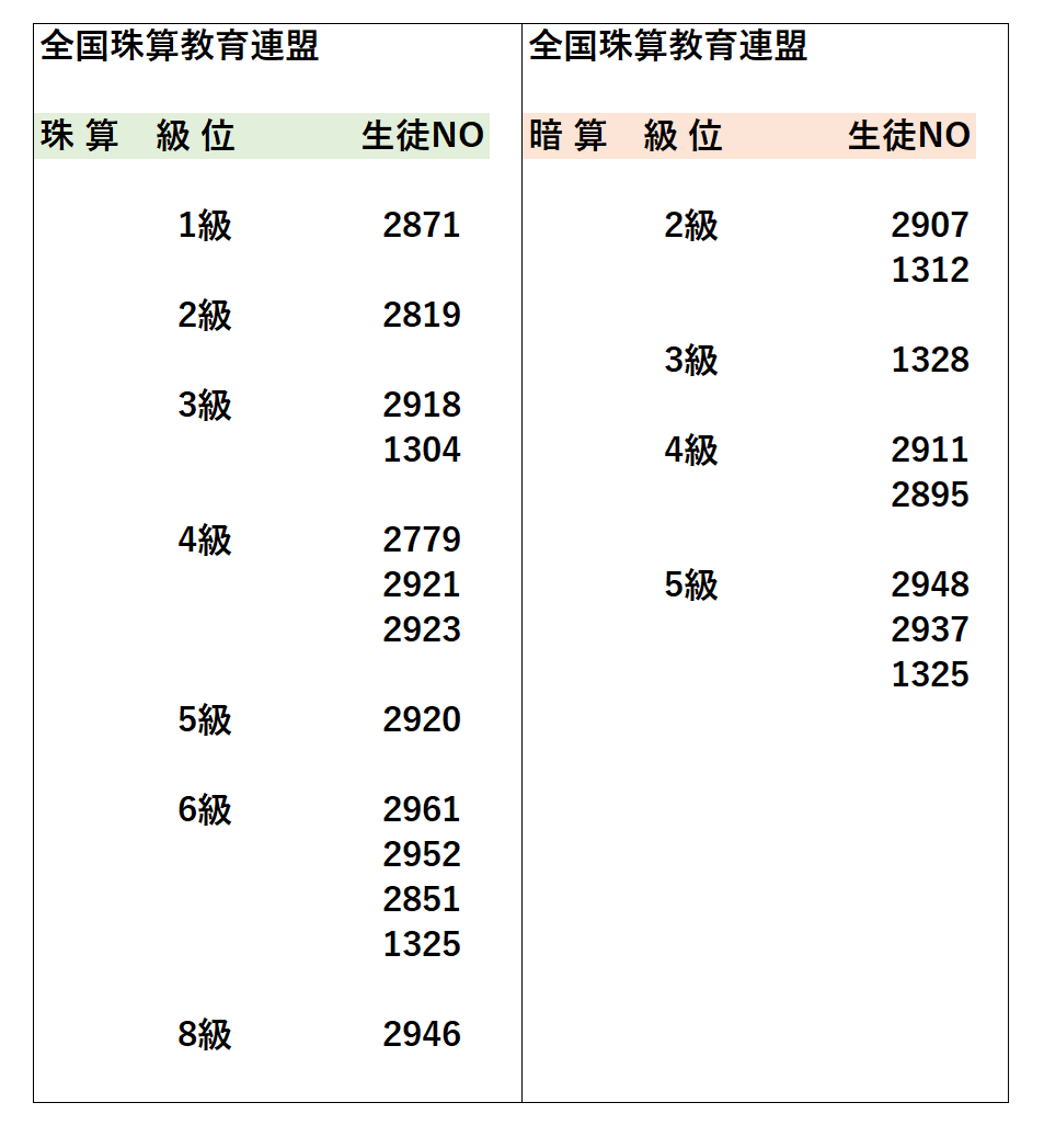 第429回 全国珠算教育連盟 検定試験合格者を掲載しました